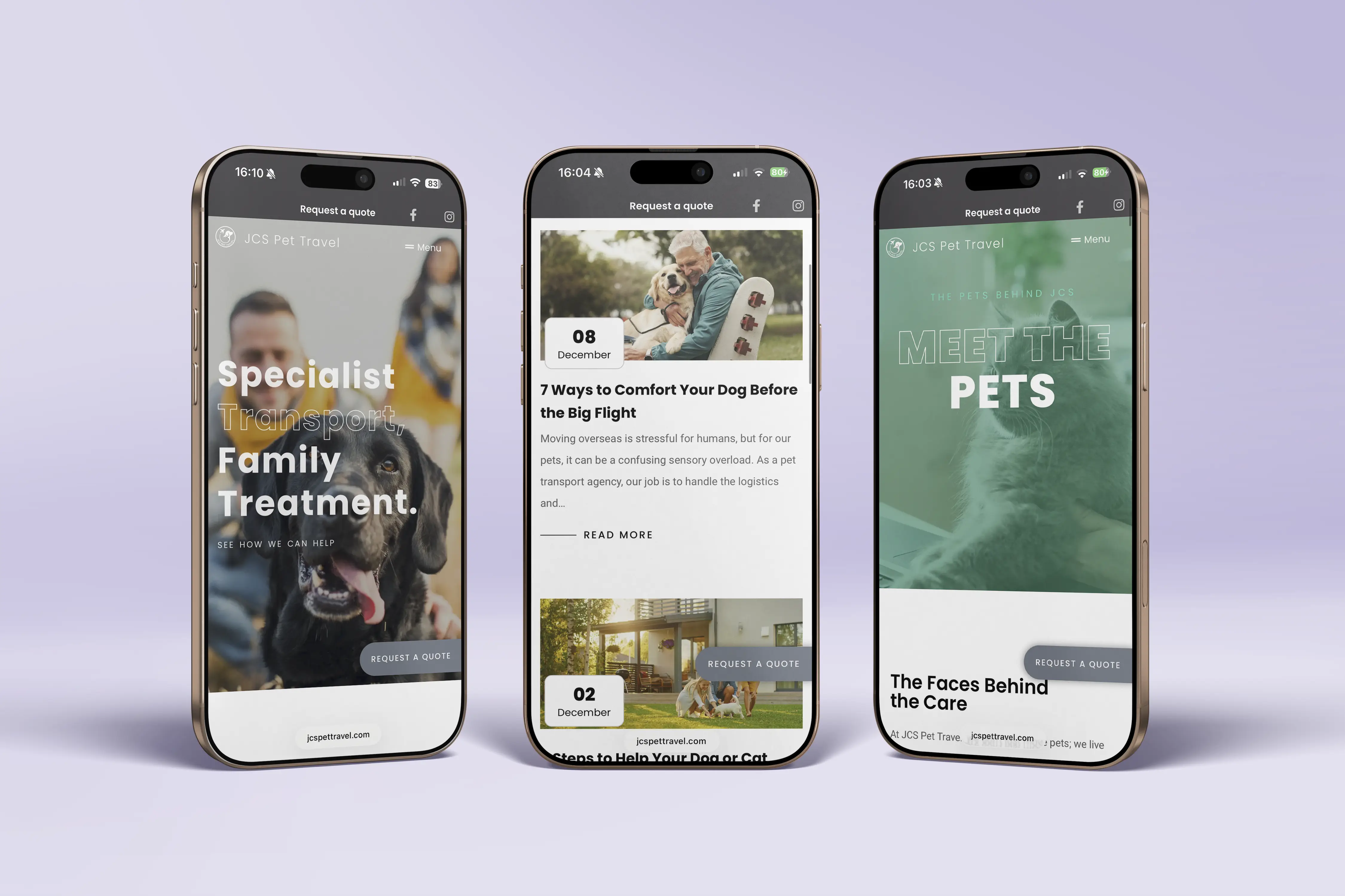 The new site highlights JCS’s specialist focus on safe and reliable pet transportation, ensuring customers immediately understand the standalone offering, its expertise, and its unique value.