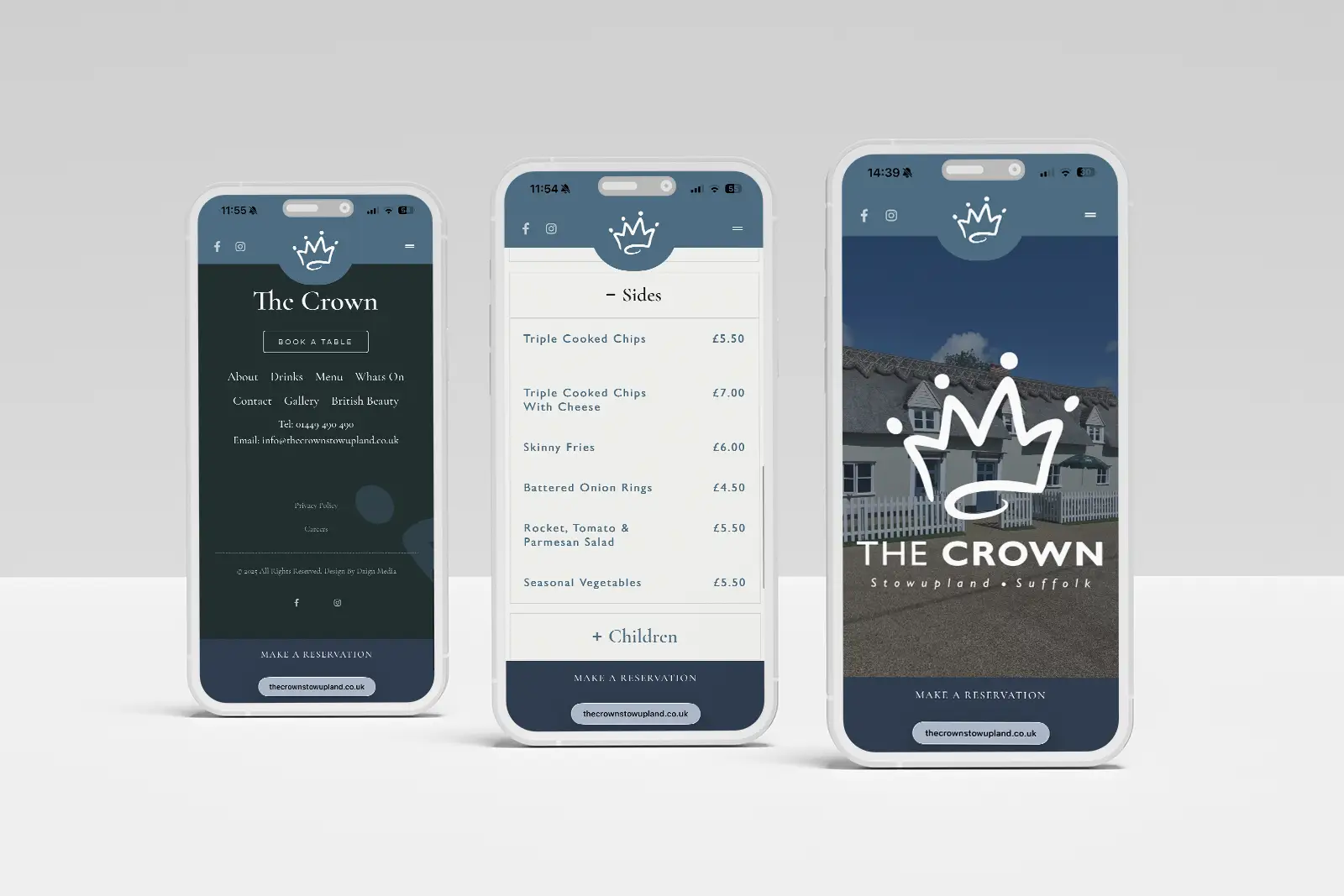 The redesign of thecrownstowupland.co.uk focused on modernising the visual identity and improving the overall user experience whilst retaining the charm of a 14th centuary pub. This included a refreshed, premium look with updated branding elements such as typography, spacing, and imagery.